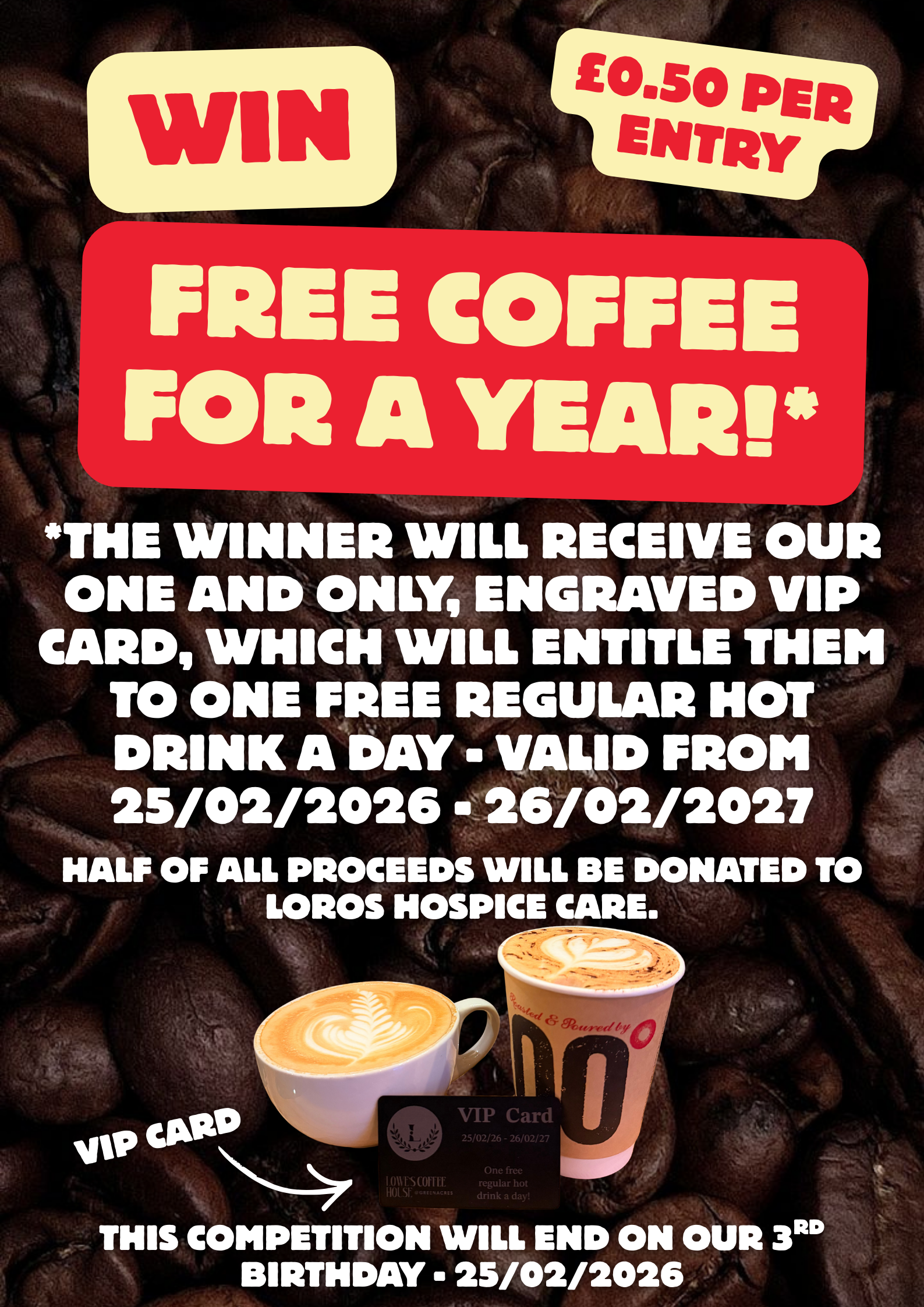 WIN FREE COFFEE FOR A YEAR!* £0.50 Per Entry.